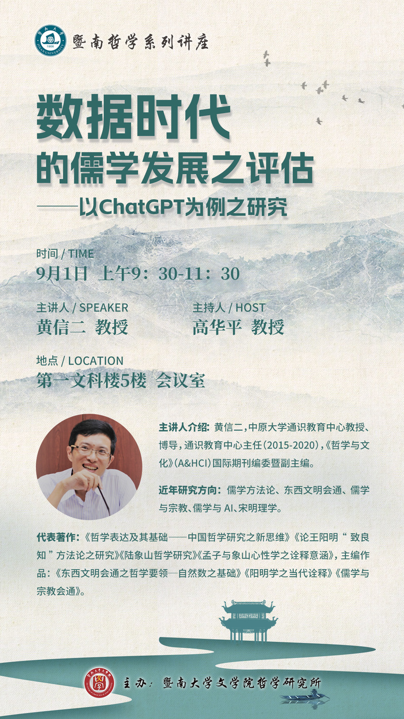 讲座预告丨数据时代的儒学发展之评估──以ChatGPT为例之研究