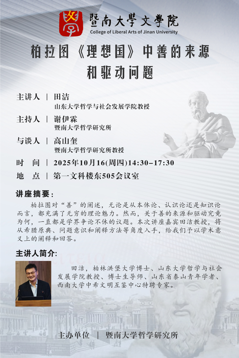 讲座预告丨柏拉图 《理想国》中善的来源和驱动问题