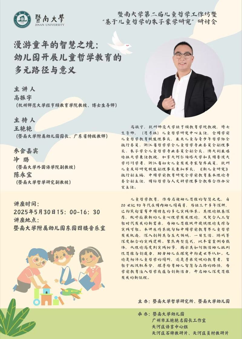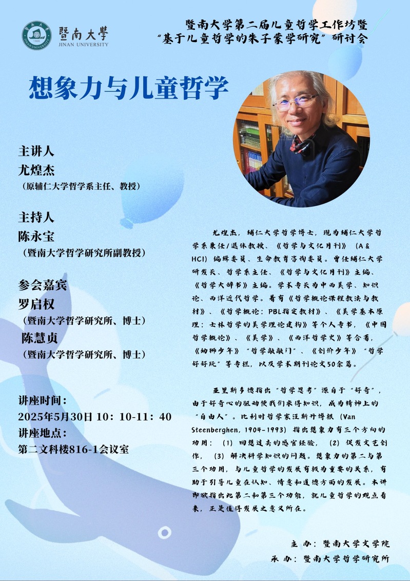 活动预告丨暨南大学第二届儿童哲学工作坊暨“基于儿童哲学的朱子蒙学研究”研讨会系列讲座