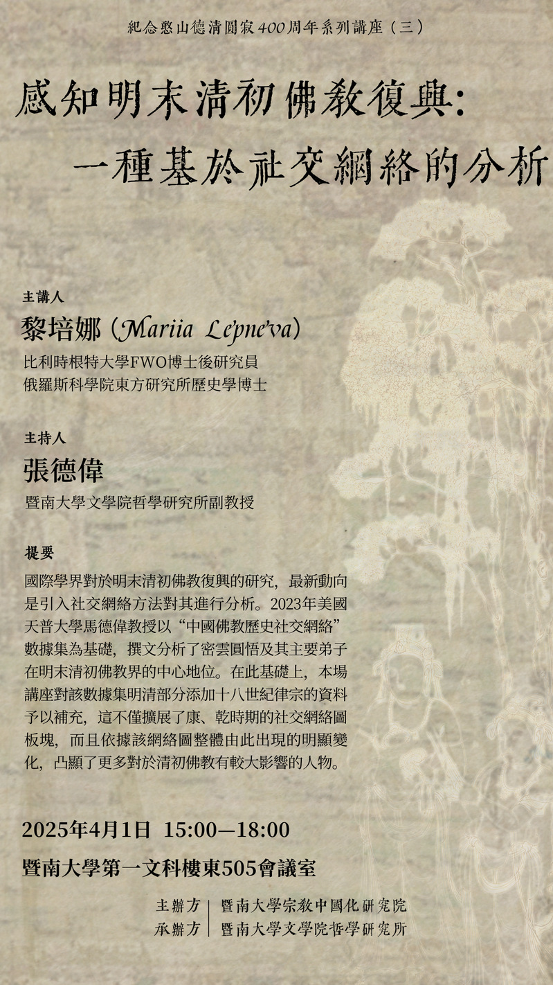 讲座预告丨感知明末清初佛教复兴:一种基于社交网络的分析