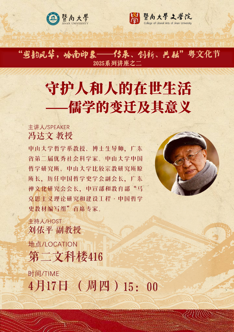 讲座预告丨守护人和人的在世生活——儒学的变迁及其意义