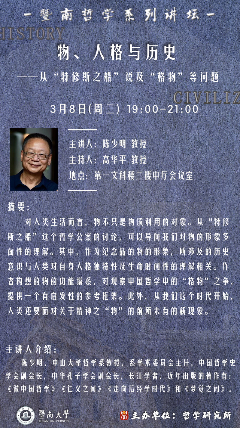 讲座预告丨物、人格与历史——从“特修斯之船”说及“格物”等问题